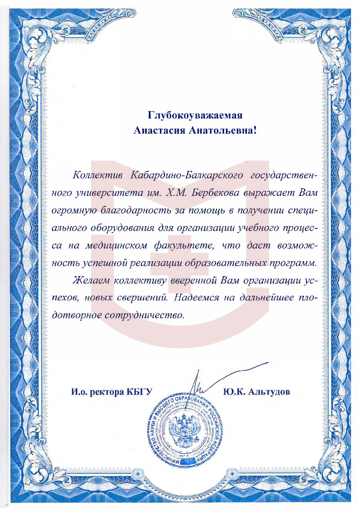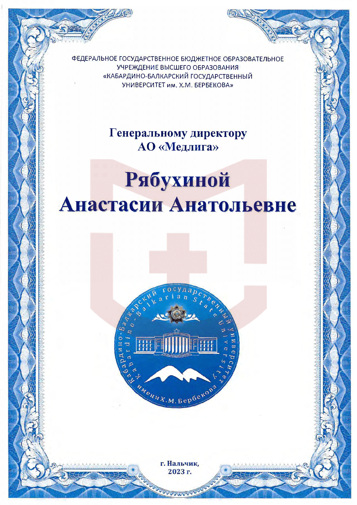 Отзыв от КБГУ им. Х.М. Бербекова
