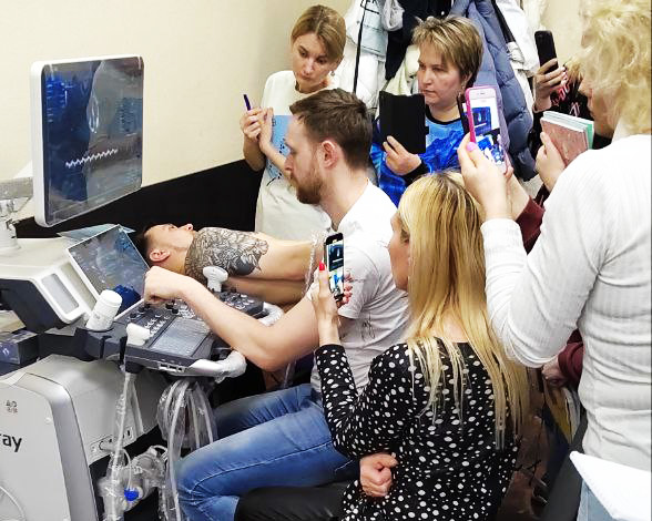Стажировка организована учебным центром «Медтрейн» при технической поддержке компании MEDLIGA. Врачи ультразвуковой и функциональной диагностики отрабатывали практические навыки на двух УЗ аппаратах экспертного класса Mindray DC-80 и портативном экспертном приборе Mindray M9T. Стажировка по каждому из направлений предполагала начисление баллов НМО.