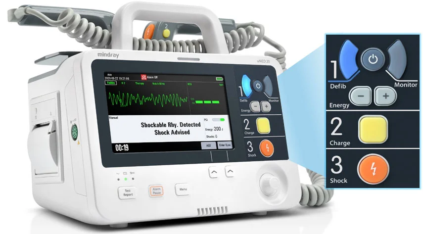uMED 20 также оснащен двухфазной технологией 360J и технологией QShockTM, которые еще больше повышают эффективность дефибрилляции