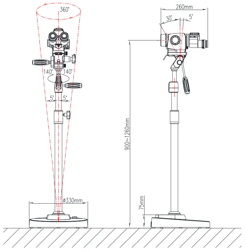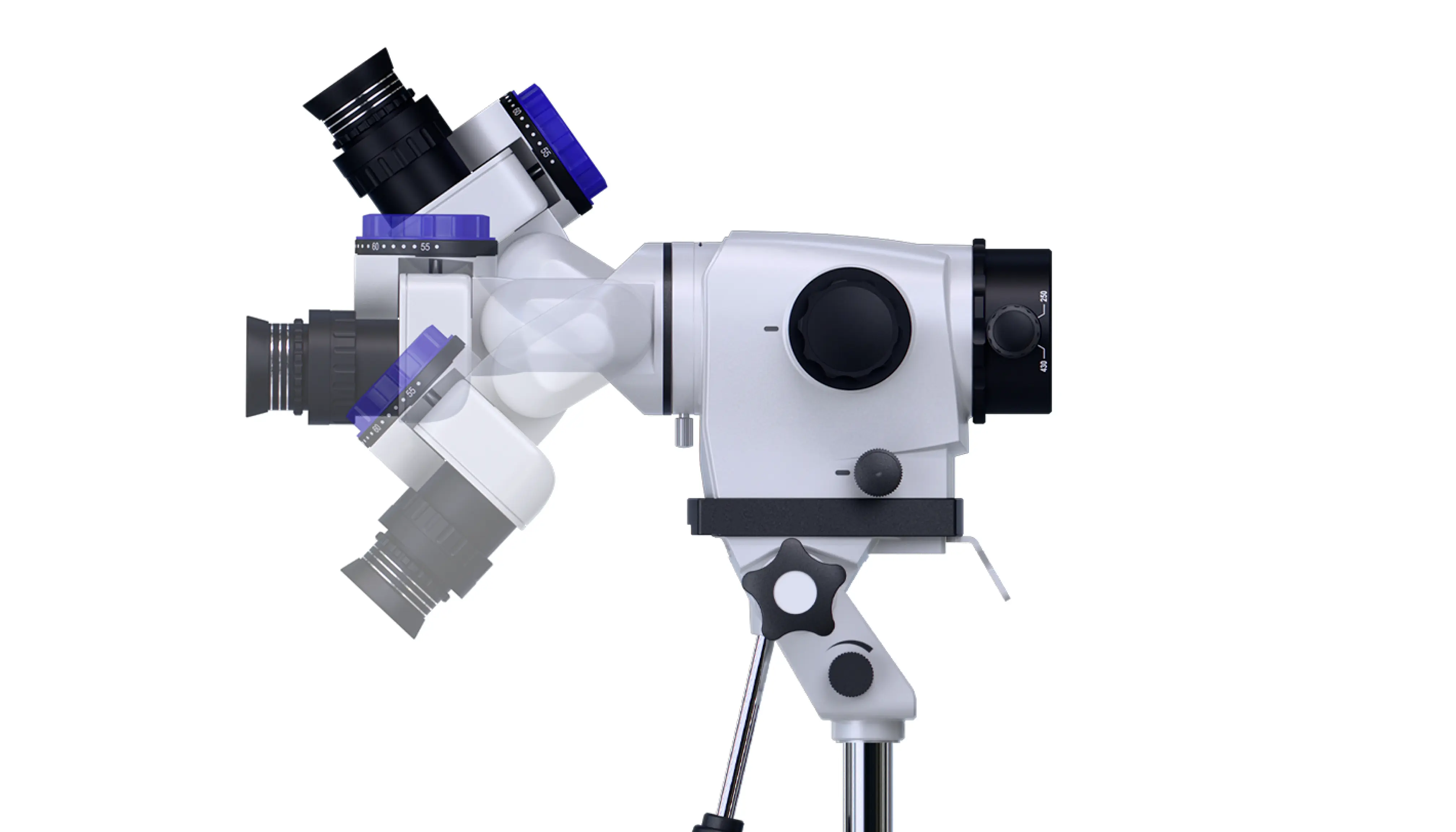Отклоняемый штатив на стационарном основании позволяет регулировать угол и расстояние для оптимального и детального обзора, не перемещая прибор и не меняя положение пациента.