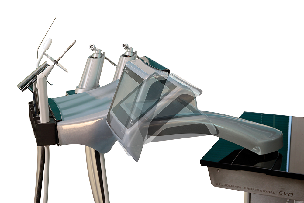 Поворотная консоль С возможностью размещения до 5 инструментов: система аспирации, инсуффлятор с оливой Политцера, шприц для промывания ушей и система сжатого воздуха для медикаментов(опция)