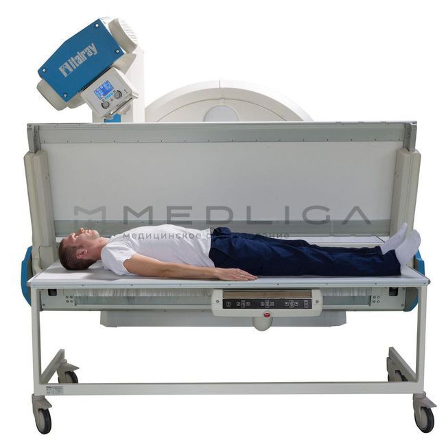 - Аппарат позволяет выполнять как цифровую рентгенографию, так и цифровую рентгеноскопию и даже субтракционную ангиографию. Все эти исследования возможно выполнять как на столе рентгеновского аппарата, так и на столе-каталке.