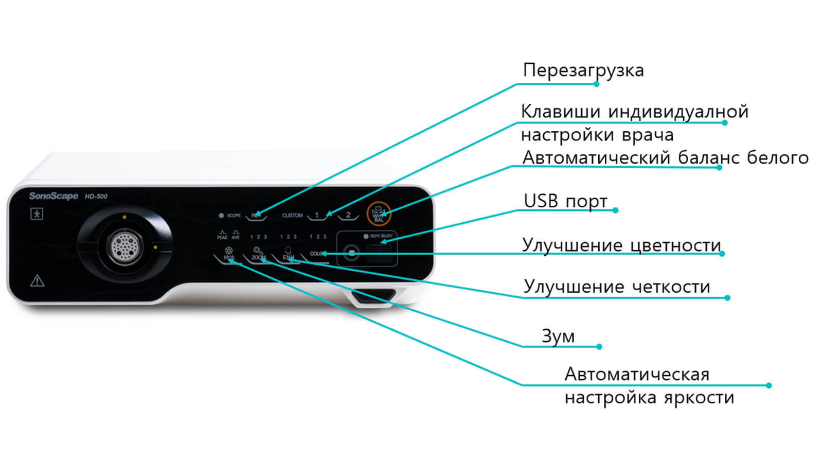 Новый процессор HD-500 использует современные технологии SonoScape для получения эндоскопических изображений высокой четкости (FullHD). Данный видеопроцессор лежит в основе видеоэндоскопической системы SonoScape HD-500.