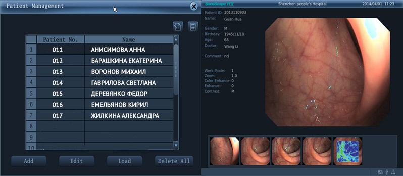 Собственная технология SonoScape для хромоэндоскопии VIST сочетает в себе оптическую и цифровую обработку изображений. Она создает четкий и яркий контраст изображения и значительно усиливает детализацию слизистой оболочки и кровеносных сосудов. VIST облегчает обнаружение поражений и прогнозирование опухолей на ранней стадии.
